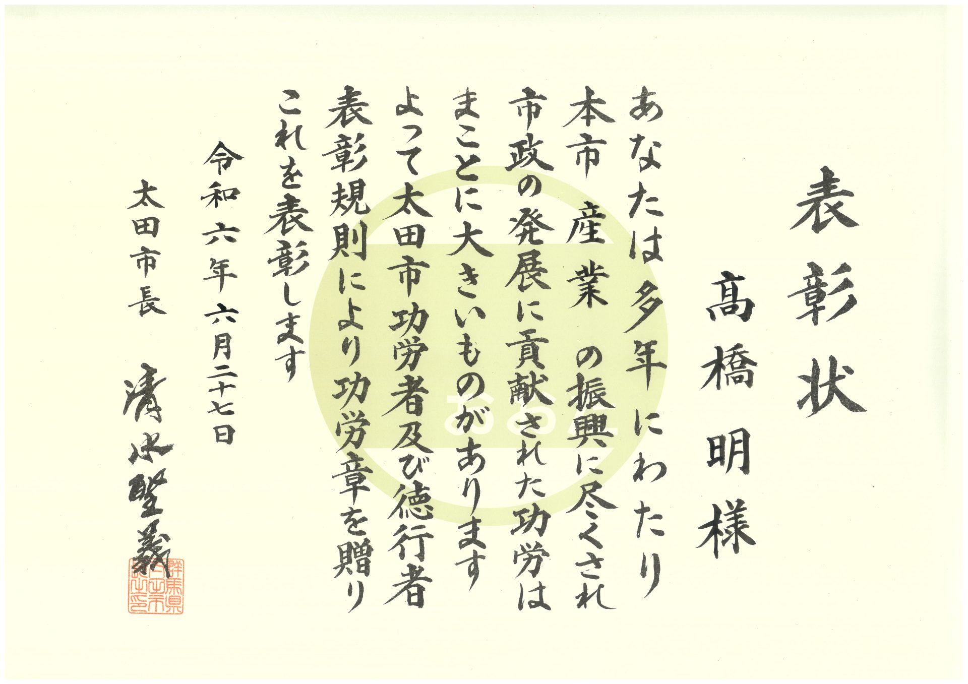 • 令和6年度太田市功労者及び徳行者表彰式にて表彰されました