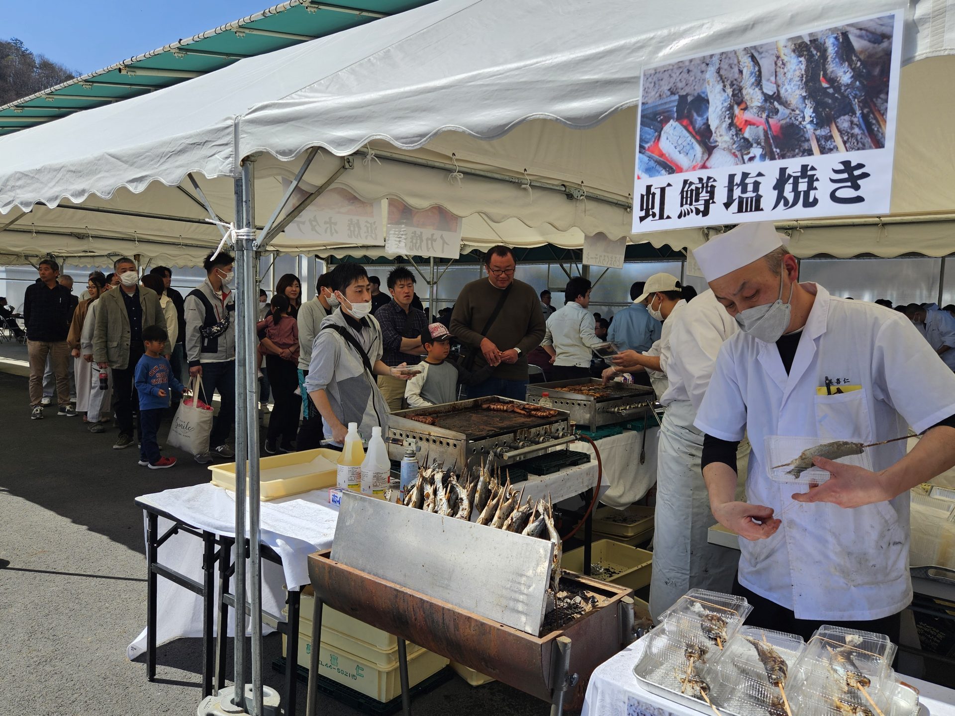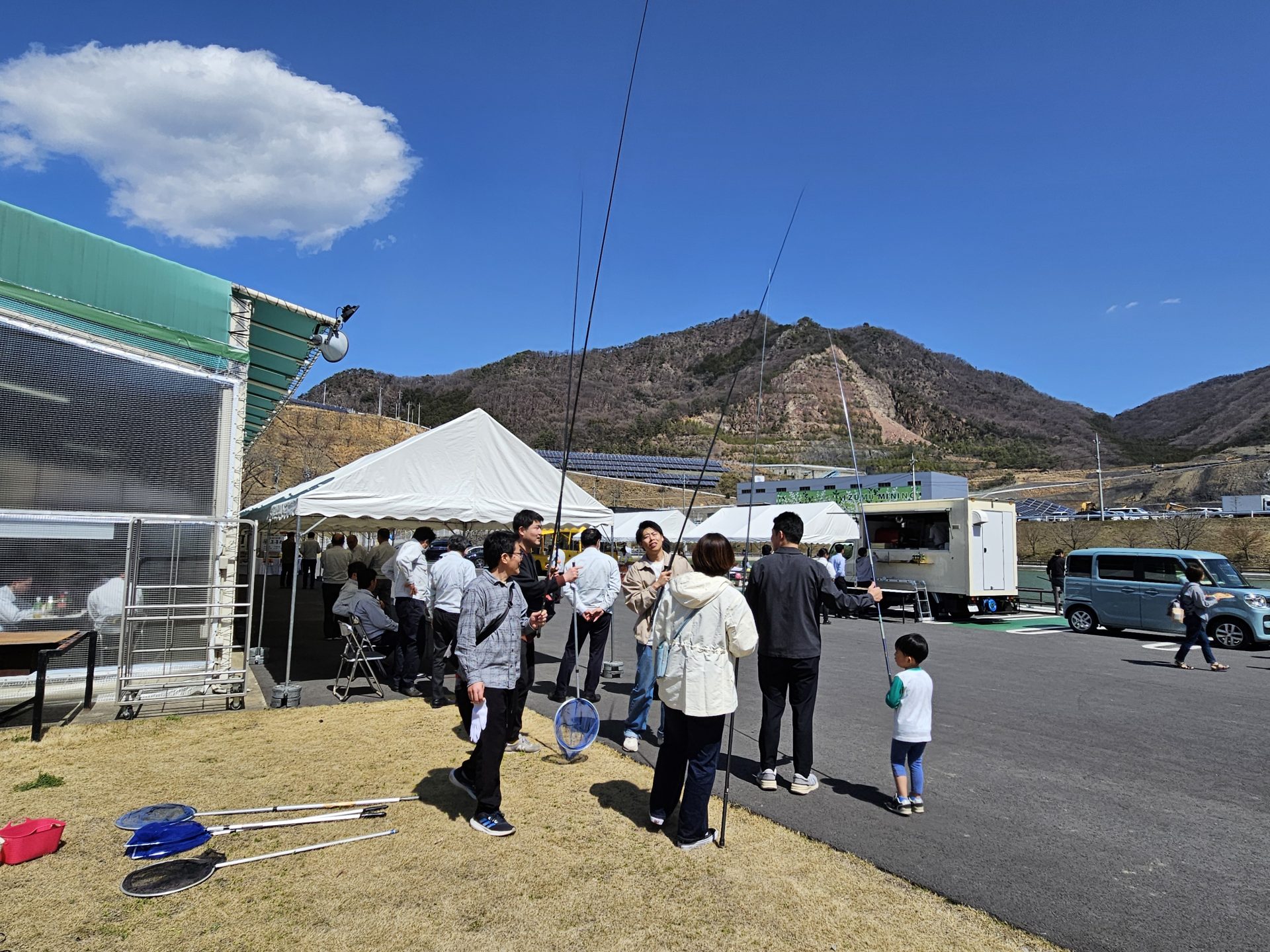 会員の皆さまはご家族連れで参加された方も多く、さまざまなケータリングの食事に舌鼓を打ち、目の前の池での魚釣りを楽しまれていました。