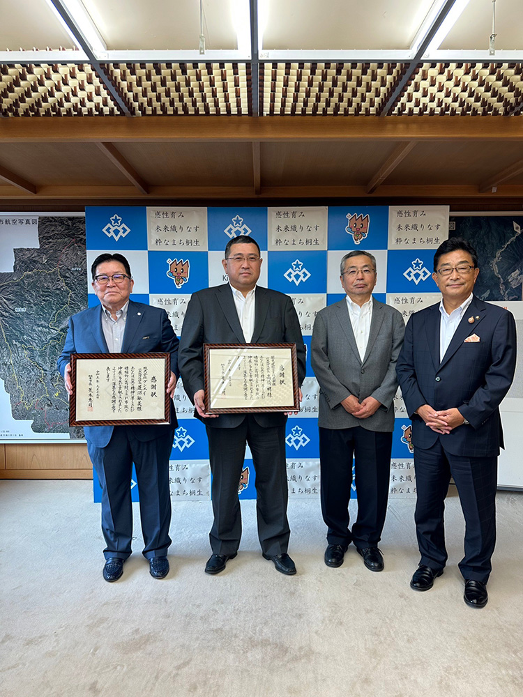 現在当社で新庁舎を建設中の桐生市には、同市出身の実業家である大川栄二氏が生涯をかけて集めたコレクションが展示されている大川美術館があります。当社は老朽化が進む美術館の改修費用として桐生市に「企業版ふるさと納税」を行い、共に寄付を行った㈱グンエイ様とともに桐生市から感謝状を頂戴しました。