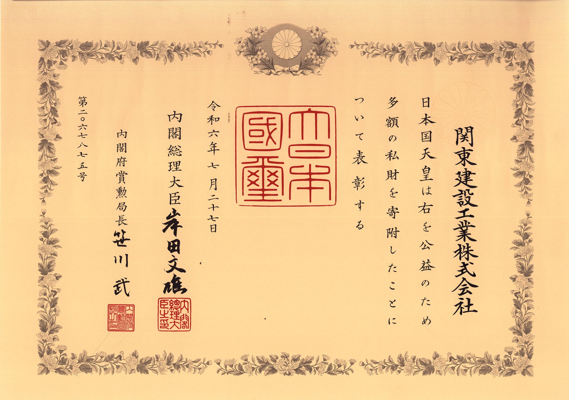 当社は昨年、桐生市に対して「企業版ふるさと納税」を行ったことにより、国から紺綬褒章を受章し、11月18日に桐生市役所にて伝達式が行われました。