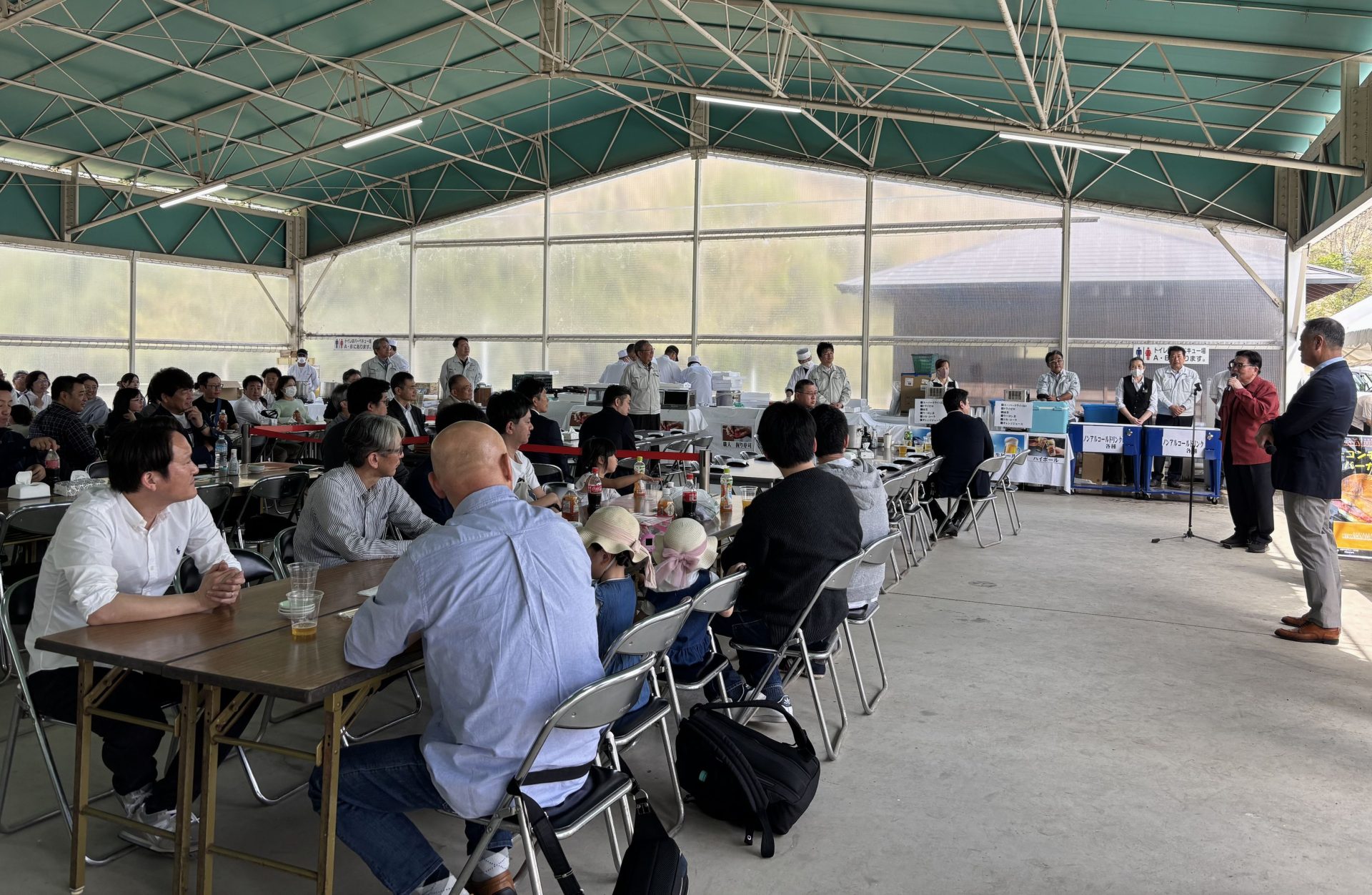 関栄会花見会は、普段我々の事業に協力して頂いている協力会社の皆さまに対する感謝の会です。協力会社の皆さまとそのご家族、177名が参加され、晴天の下、魚釣りをしたり、さまざまなケータリングの食事を楽しんでおられました。