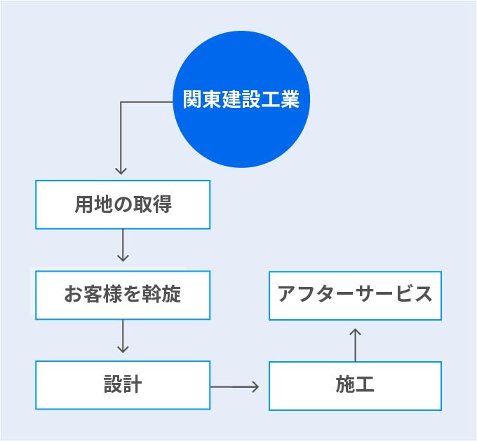 建設に関する一連の作業をワンストップで提供。お客様との関係が深いためリピートにつながることも多く、安定的な受注が見込めます。