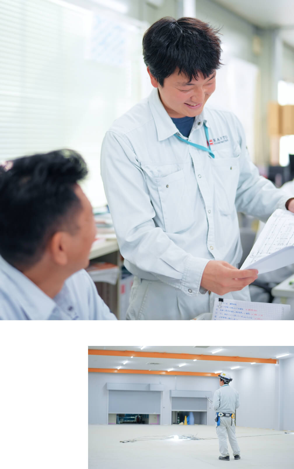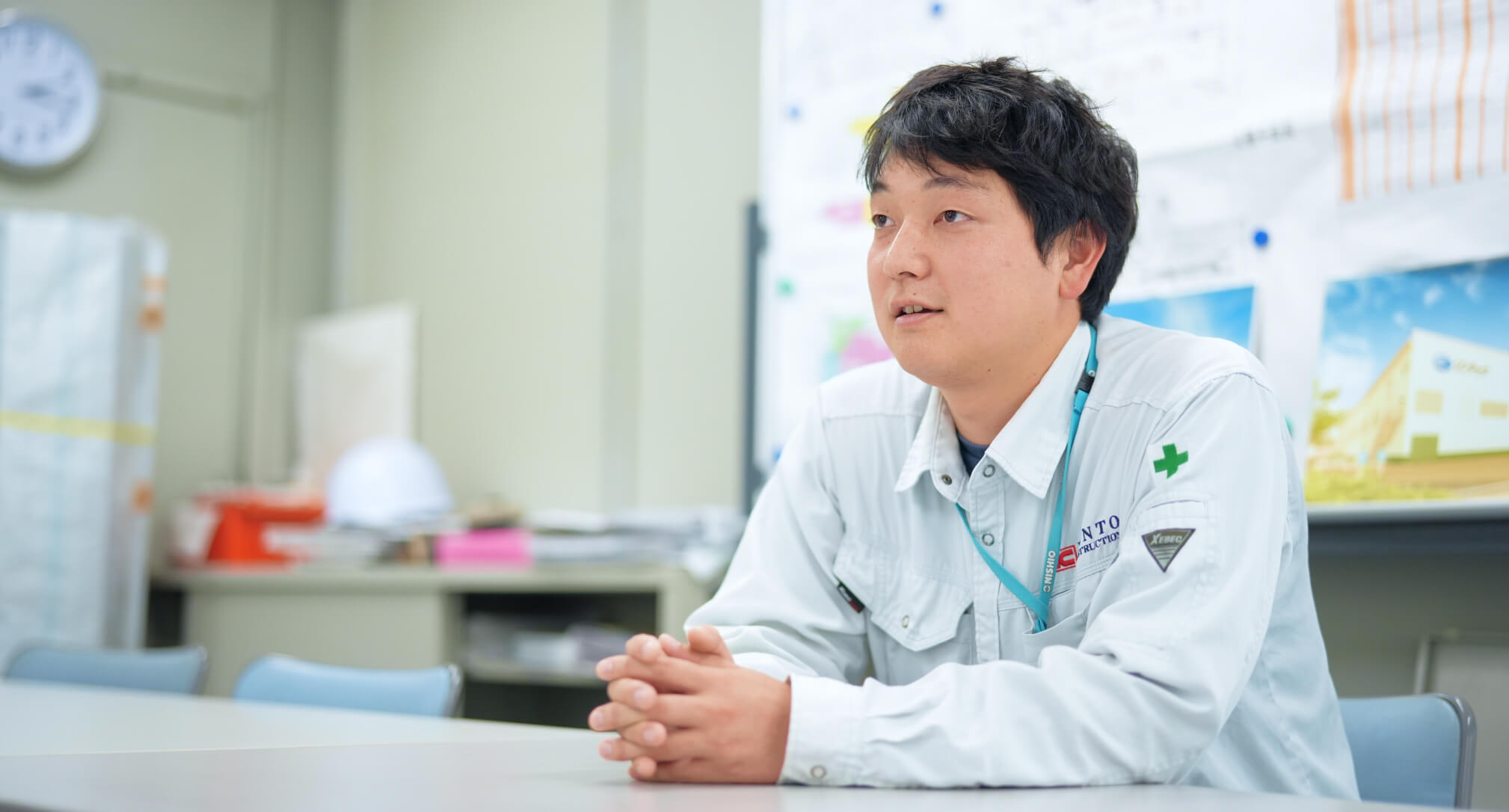 東洋大学理工学部卒。出身地は千葉県だが、地元には拘らずに就活を行い、カンケンに出会う。現場に応じて首都圏内で拠点が変わるが、その地のおいしいお店を探すことを楽しみにしている。現在は熊谷市で工場建設の現場を担当。