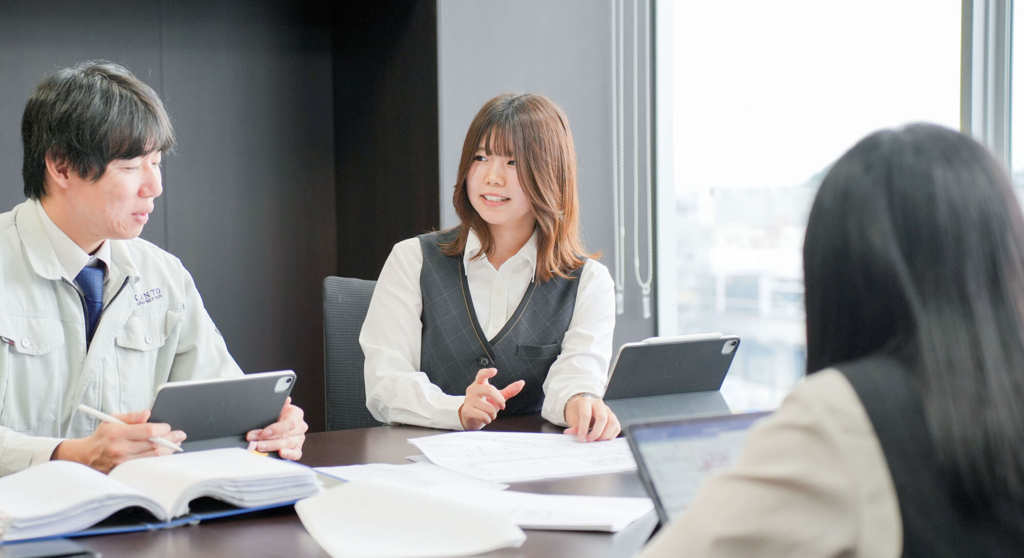 営業や設計など、各担当者とプロジェクトの方針やスケジュールについて打ち合わせ。