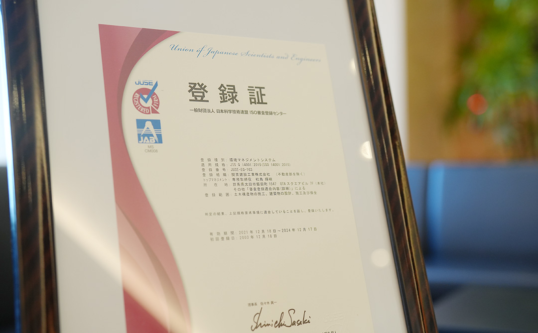 環境パフォーマンスを向上させるためISO14001の認証を取得し、地球環境に配慮した経営を行っています。