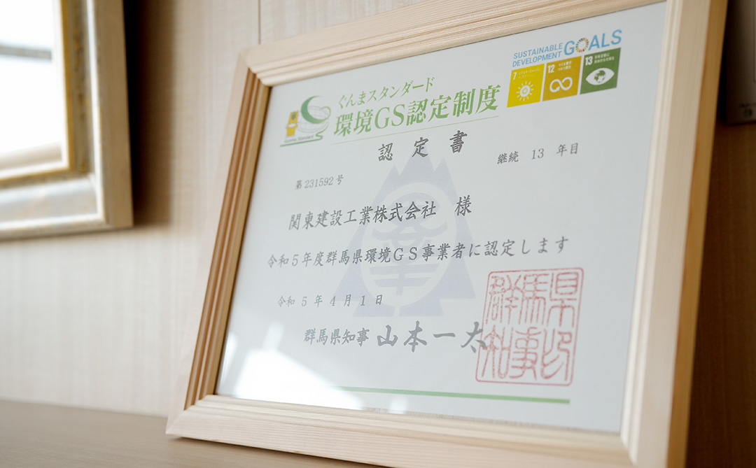 関東建設工業は、経営理念の一つである「環境保全の取り組み」のもと、建設業の事業活動が、地球規模の環境および地域の環境に関わりが深いことを認識し、環境と調和した維持可能な循環型社会を目指した活動を推進しています。